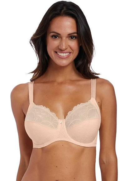 The Memoir Full Cup Bra from Fantasie in Natural Beige features a blend of soft geometric and crochet-look lace. This ultra-wearable styles is Fantasie’s signature bra shape that offers superb comfort and support all day long. Co-ordinate with the Fantasie Memoir Natural Beige Brief.
