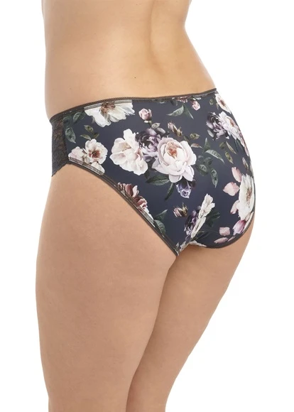The Pippa Brief from Fantasie in Slate Grey isĀ adorned with soft blush pink blossoms against a Slate grey background. This classic brief cut features soft handle fabric trimmed with delicate lace for complete comfort. Co-ordinate with the Fantasie Pippa Full Cup Side Support Bra.