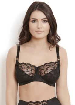 The Sophia Black Bra from Katherine Hamilton combines luxurious vintage charm with modern wearability, designed to create a timeless and elegant look for all seasons. It has perfectly contoured balcony cups without compromising on comfort and fit. Modern romance meets everyday luxury with this exquisite lace bra. Co-ordinate with the Katherine Hamilton Sophia Black Suspender Belt or the Katherine Hamilton Sophia Black String.